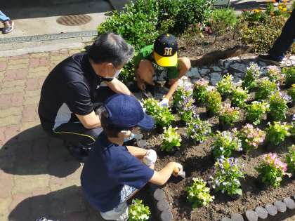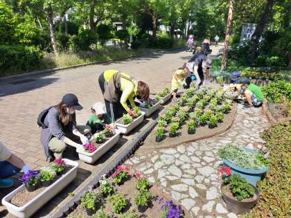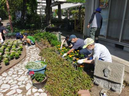 5月21日(土)と6月4日(土)にさざんか花の町協議会の皆さん主催の、福祉会館前の花壇植替えに参加いたしました。