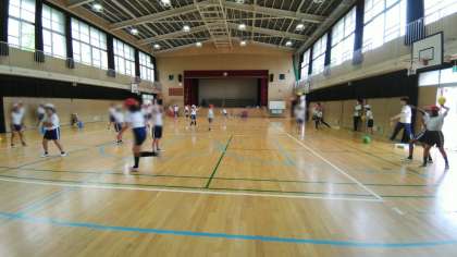 研究授業を行っていました。コツをつかって、ロングスローゲームをすることをめあての学習です。作戦会議もあり楽しそうです