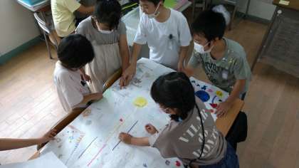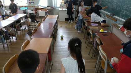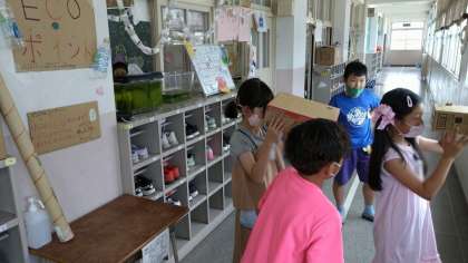 廊下での待ち時間を楽しむ工夫をしている学年もありました。