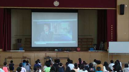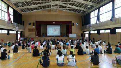 講堂での間隔をあけての集合の仕方や聴く姿勢についておほめいただきました。