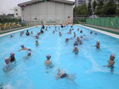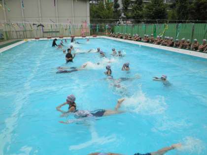 先週は、水温が低かったり、雨が降ったりでプール水泳ができない日がありましたが、今日は久し振りに水泳指導ができました。少し、水は冷たかったのですが、子どもたちは元気よく泳いでいました。