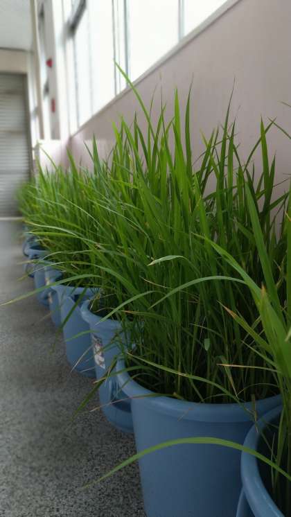 ちょうど梅雨もあけ、「中干し(なかぼし)」の段階に入りました。土の中に空気(酸素)が行き渡るようにし、根を丈夫にします。乾いた土に耐える根も生やさせます。台風による風雨や激しい夕立のことも考え、校舎内廊下での中干しです。多少の分けつも見込んでいるのか、貯めた水は自然蒸発をさせるようです。