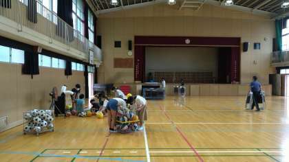 運動委員会:ボールに空気を充填し、体育倉庫を掃除しました。