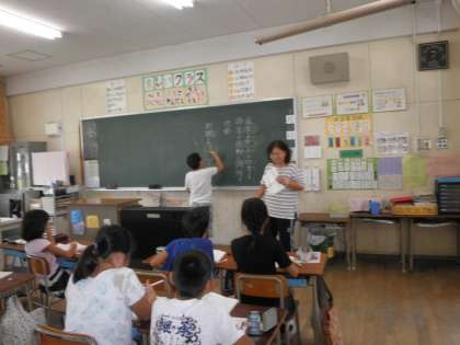 4年生は、国語の学習で「漢字しりとり」をしています。楽しみながら意欲的に漢字の学習に取り組んでいました。