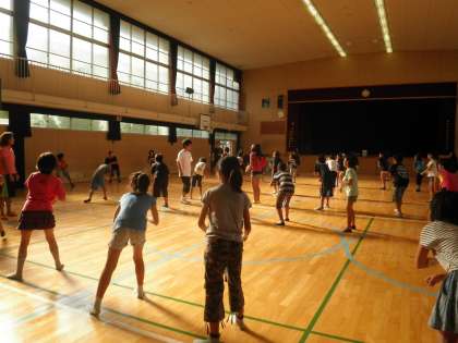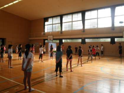 「三・三・七拍子!!」講堂から元気の良い声が響いてきます。今日から、応援団の子どもたちが活動を開始しました。運動会本番まで、力いっぱいがんばりましょう。