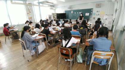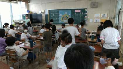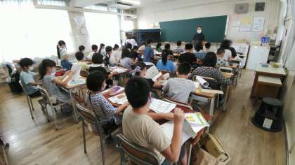 夏休みの課題を集めます。今日は、林間学習の説明会も予定されています。