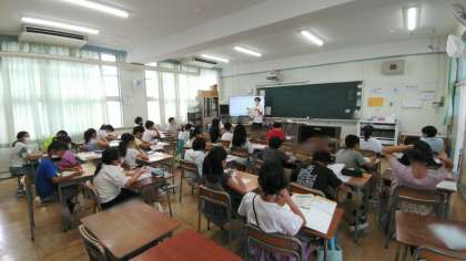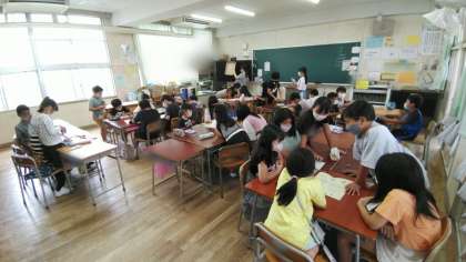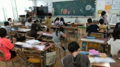 おなかがすいてきた4時間目。2学期初めての給食は、みんな大好きビーフカレーです。もう少しのがまんです。