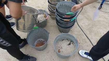 運動会の練習が、来週月曜日から本格的に始まるのを前にして全員で運動場の石やごみなどを拾いました。わずか10分程度ですがバケツ2杯分も集まりました。