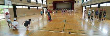 総合的な学習の時間:障がい理解教育としてパラスポーツのボッチャを体験しています。わざと白いジャックボールに当てて逆転をねらうなど、なかなか奥が深い競技です。
