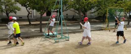 理科:とじこめた空気と水の性質を学びます。空気鉄砲を押すときの手ごたえは、水鉄砲の時と違うかな。