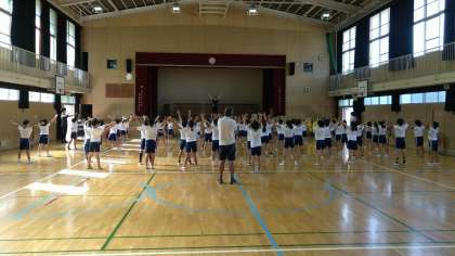 きょうの1時間目に1年生が運動場で、2年生が講堂でがんばっていました。楽しみですね。
