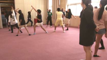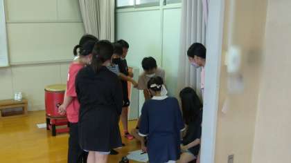 放課後、威勢の良いかけ声と和太鼓の響きが聞こえてきました。4階の第二音楽室で、紅白の両チームの応援団が、それぞれ応援練習や作戦会議を行っていました。相手のパフォーマンスが気になります。