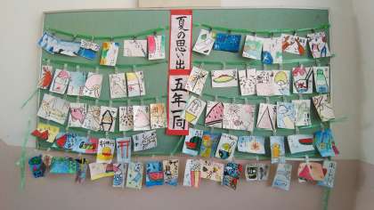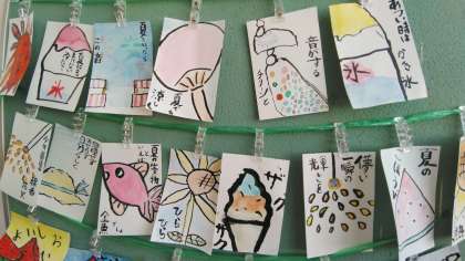 階段踊り場掲示板に飾られていました。あじのある絵でいいですね。