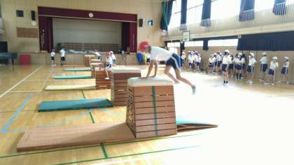 屋内スポーツクラブ:跳び箱をより高くよりきれいに跳べるようチャレンジです。
