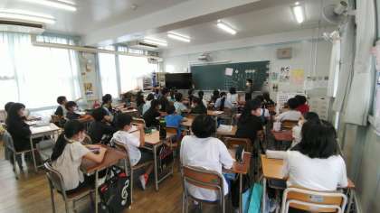 団体演技の南中ソーランの練習について意見や感想を発表していました。