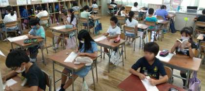 テスト中でした。見直しも含め早く終わった人は静かに過ごします。