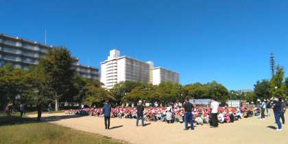 その後、さらに安全を確保する必要が生じたことを想定して、南側にある近隣の公園をお借りして二次避難の訓練を行いました。(写真)