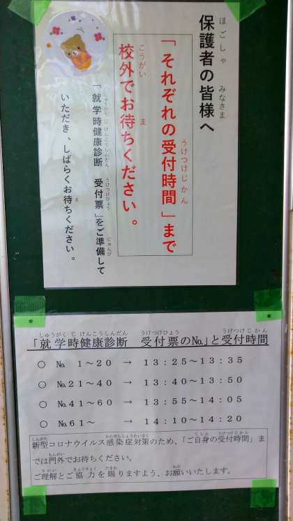 本日は「就学時健康診断」を開催します