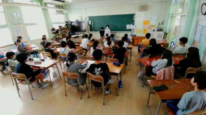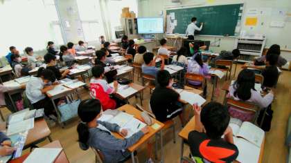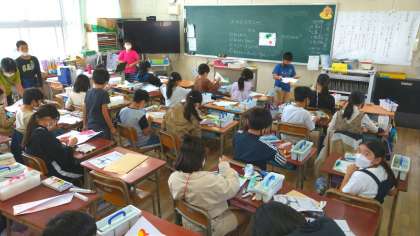 社会科で天神祭りの移り変わりを通して、当時の社会情勢を学んでいます。