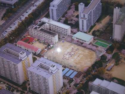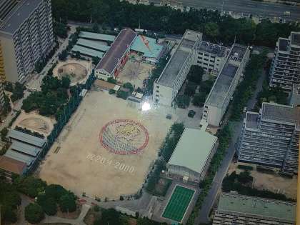 2020年に創立40周年を迎えた記念に撮影した航空写真(2021年8月撮影)が額装され届きました。校長室にある創立20周年、30周年に撮影された写真の横に飾らせてもらいました。昨年度NSOから記念品のひとつとして子どもたちに配布していただいたクリアファイルにある写真と同じものです。