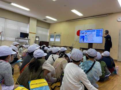 消防署の方から、消防車の紹介や消防署の仕組み、火事が実際に起こったらどのようにお知らせが来て、出動するのか、何台消防車は出動するのかなど、具体的なことをたくさん教えていただきました。