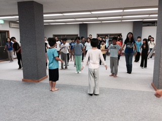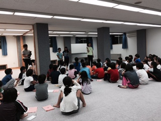 本日はあいにくの雨のためミーティングルームで朝の集いを行いました。元気よく体操をしました。