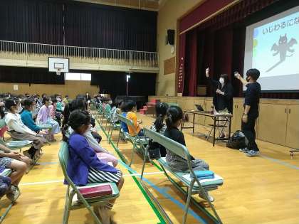 きょうの2時間目、社会福祉士で、内閣府などさまざまな機関での肩書を持つ辻由起子さんに今年もお越しいただき、1、2年の部でお話をしていただきました。学年主任の先生を交えた寸劇で、こころのコップからブラックハートを減らしてレッドハートで満たそうということを楽しく学びました。