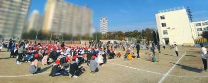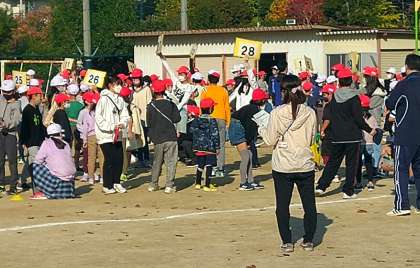 6年生がリーダーシップを発揮し班番号のプレートを掲げて班員を招集します。異学年交流による深い学びに期待します。何か楽しいことができそうでワクワクしますね。