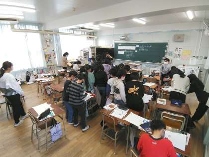 解き方について、自分の考えと同じもの同士でグループを作るために席を移動し交流します。学びが深まります。