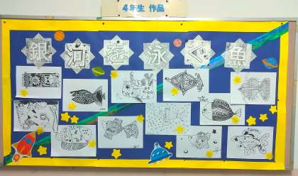 階段踊り場掲示板に飾られていました。センスがありますね。