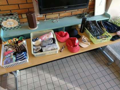 以前よりは、落とし物の数が減りましたが、記名さえしていれば落とし物コーナーに並ばなかった物たちです。持ち主に戻りますように。懇談期間中、玄関フロアに展示しています。