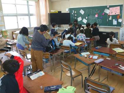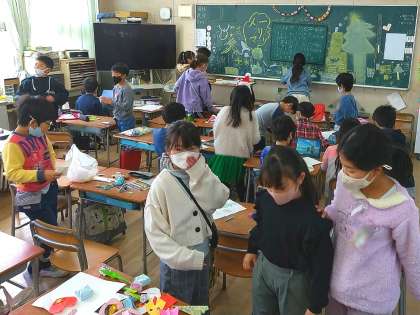 きょうは、クリスマス会やお楽しみ会などの取組をする学級が多いようです。写真は、2・3年生ですが、クリスマス会の飾りつけ作成などの準備をしていました。楽しみですね。