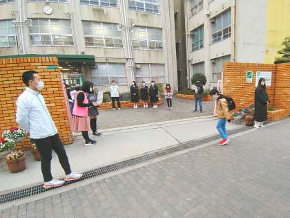 2月1日より8日まで、本校の運営委員会と南港北中学校生徒会が交流し、合同で「あいさつ運動」を行っています。