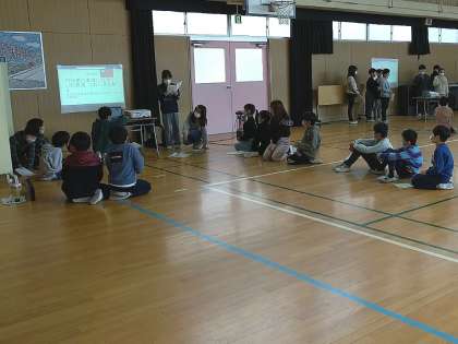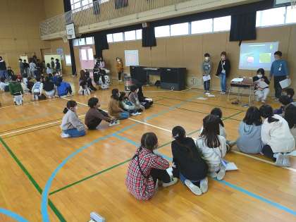 きょうの5時間目、学習参観のリハーサルとして講堂で3年の全クラスが集まり、班で調べたことを発表しました。外国のことや生き物、食べ物など、聞く人にわかりやすく伝えようと工夫を凝らします。