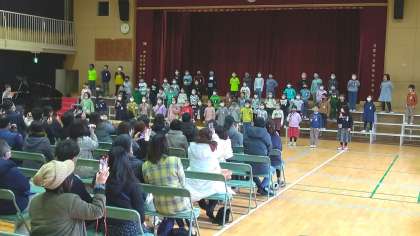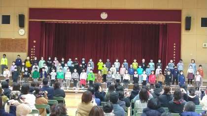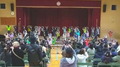 きょうの5時間目、たくさんの保護者のみなさんが見守るなか、学習参観の発表を行いました。