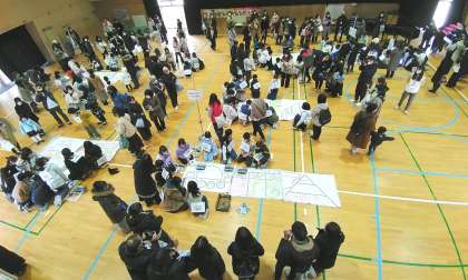 稲作から米を収穫するなど食をテーマに1年間とりくみ、食べ物を得ることの苦労や大切さを学んできた5年生は、取組の記録映像を放映の後、『食の座談会』を保護者のみなさんにも参加していただいて行いました。