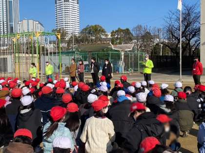 暑い日も寒い日も、風雨の時も、子どもたちの登下校を見守ってくださっている地域のみなさんへ感謝するお礼の会を運営委員会が中心となって企画し、今朝の全校朝会のときに、開催しました。本当にありがとうございます。