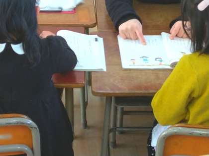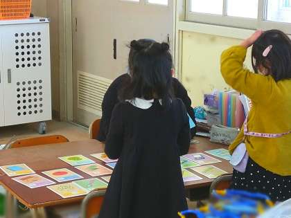 1年生の国語の授業を行っていました。教科書の音読を丁寧にしたあと、カタカナカルタなどで、楽しくカタカナの復習をしていました。