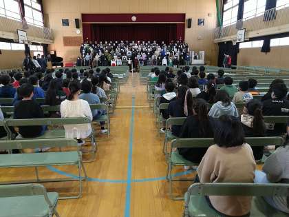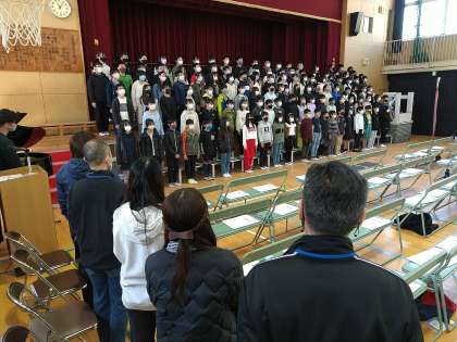 卒業式の予行練習がありました。保護者席では5年生が参加し、先輩たちの雄姿を見届けました。
