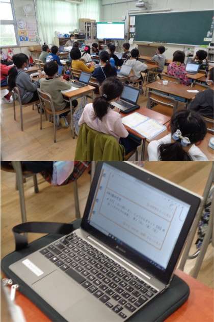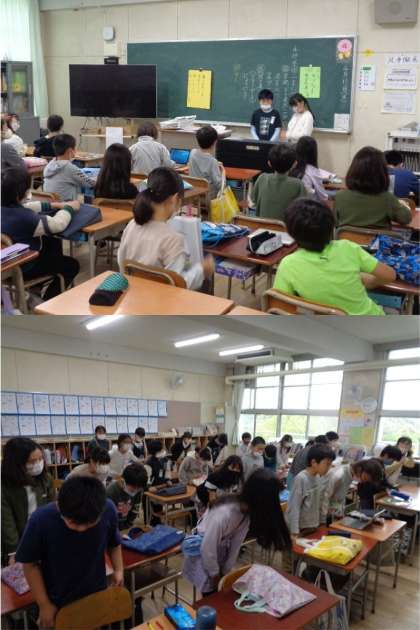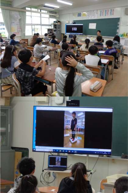 4年生の様子です。朝の会でタブレットに表示された今日の予定を確認したり、本日行われる発育測定の注意点を、ビデオを観ながら確認したりしていました。