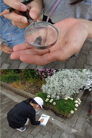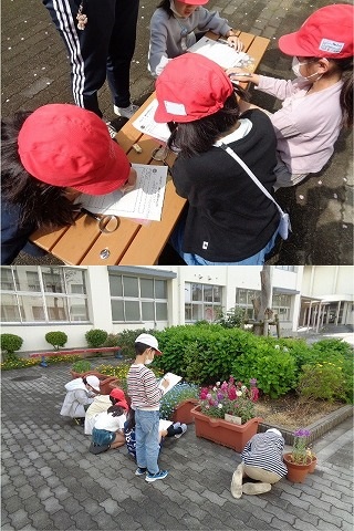 お天気も回復し、3年生が中庭で「春の生き物かんさつ」の学習をしていました。虫眼鏡などを使いながら観察した生き物や植物の様子を、プリントにまとめていました。
