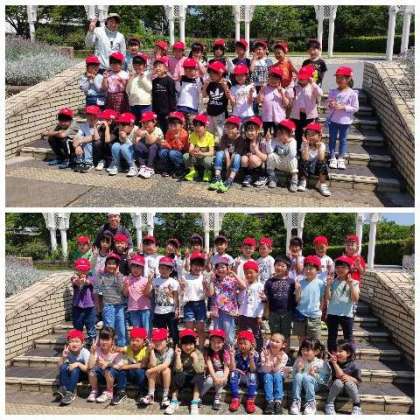 公園に着いて最初の活動は、記念写真の撮影です。クラスごとに撮りました。