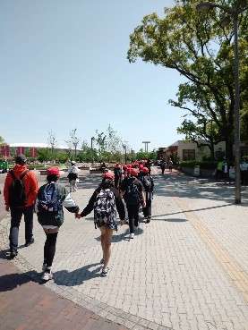 今日は5年生の遠足です。予定通りに学校を出発して、長居公園に到着しました。