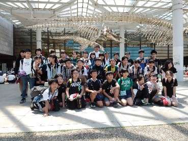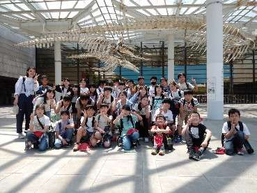 自然史博物館の見学を終えて、クラスごとに記念写真を撮りました。