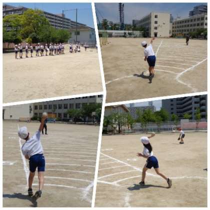 体力テストはどの学年も実施します。6年生にとっては、小学校生活最後の体力テストになります。走ったり、投げたりする様子から6年間の成長がうかがえます。