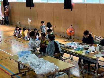 耳鼻科検診がありました。今年から新しい校医先生による検診になります。全学年が同日での実施でしたが、お二人の先生に診ていただけたので、とてもスムーズに進行しました。また、森之宮医療大学の学生さんも、保健師になるためのインターンとして、検診に参加しました。