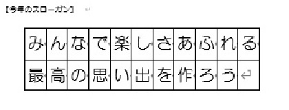今年の子どもフェスティバルのスローガンは、児童会での話し合いの結果「みんなで 楽しさあふれる 最高の思い出を作ろう」に決まりました。6月16日の実施に向け、このスローガンのもと、みんなで協力して準備を進めていきます。