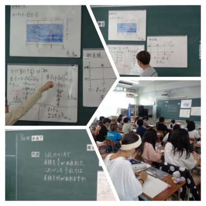 1組は算数の学習でした。分数のかけ算の答えの出し方について、自分の考えをまとめ、それを発表していました。