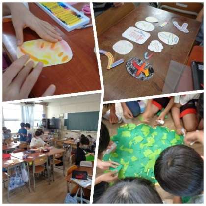 2組は学級目標の掲示物を制作していました。文字や台紙などの担当に分かれて作業を進めていました。出来上がりが楽しみです。