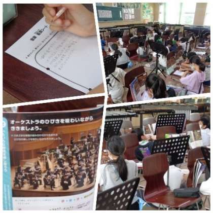 3組は音楽室で、鑑賞の学習をしていました。オーケストラによる「木星」の演奏を聴きながら、感じたことなどをシートにまとめていました。